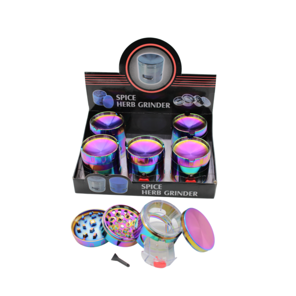 RAINBOW COLOR SIDE DRAWER WITH CLEAR TOP GRINDER 63MM 4 PART -BOX OF 6 (GRZ21171)